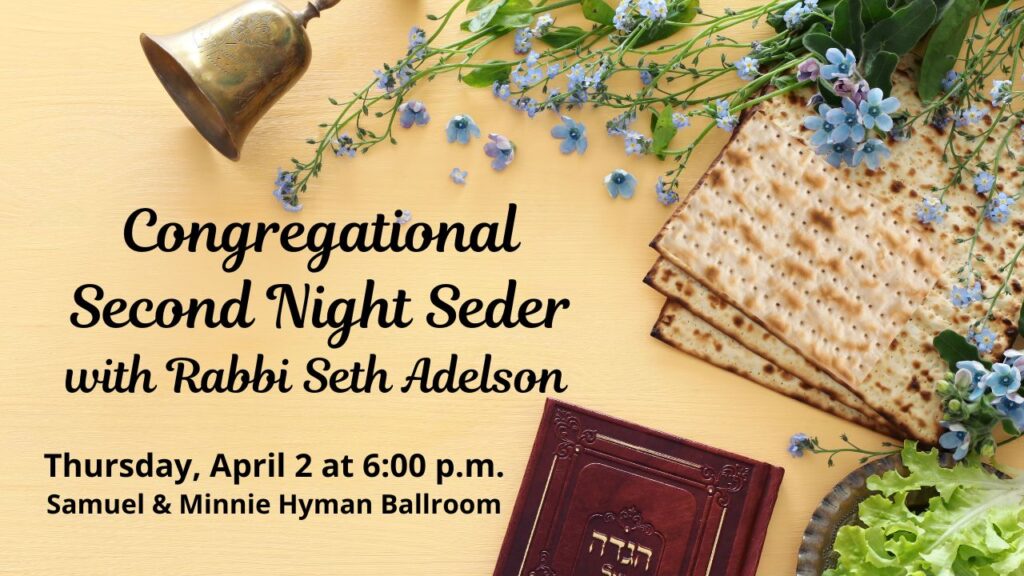 Congregational Second Night Seder – Thursday, April 2, 2026: Registration is now closed.