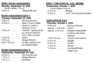 High Holiday Services Schedule 5786