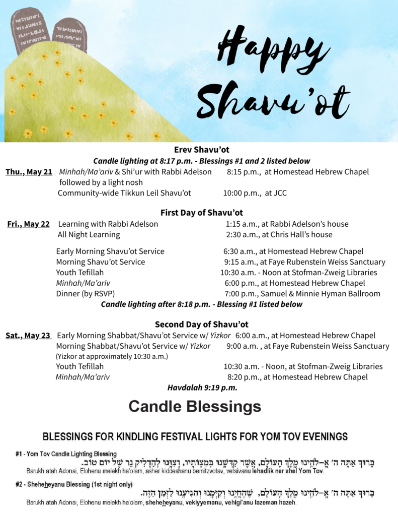 Shavu’ot 2026 – May 21, 22 and 23, 2026